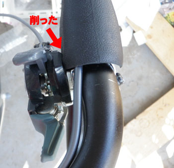 そのままだとレバーと干渉するのであたってる部分をカットしました。