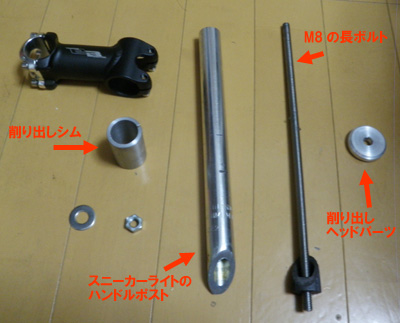原材料はクランプが割れたスニーカーライトのハンドルポスト。