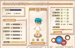 髪型、髪色、目、口、性別などカスタム項目はそれなり。それぞれ6種類ぐらいか。
