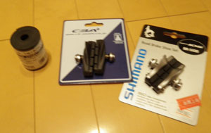 買ってきたのはフロントブレーキにあさひのロード用ブレーキ。