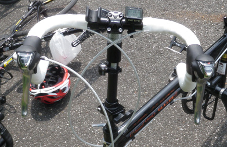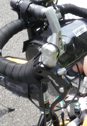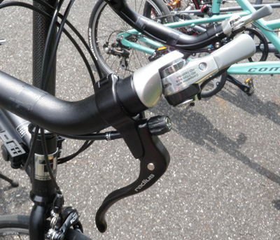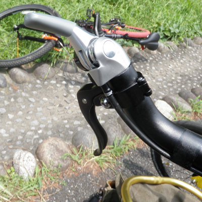 ただこれはロード用のブレーキレバーでVブレーキを引いているので、かなり深く引かないと効きが微妙。