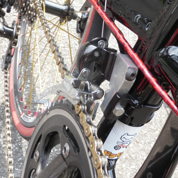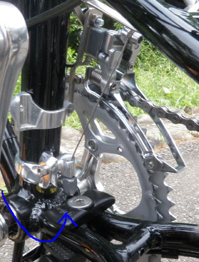 そしてフロントディレイラーの改造。