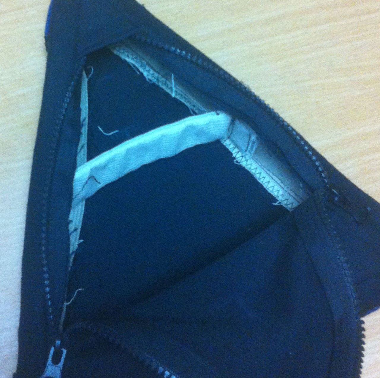 ・特に辺側のファスナー裏の始末はなんとかするべき。このままだとファスナーに噛みそうで使いづらい。