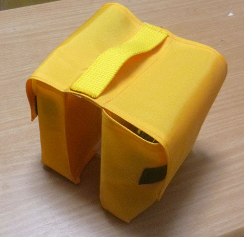 マジックテープシステムを使っているので自転車を止めるときはバッグごと持っていけるのでお手軽安心なのだ。