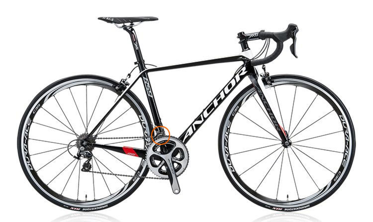 見比べればわかると思うが、スニーカーライトの方がやや後ろにFDポジションがある。これはスニーカーライトがロードよりも車輪が小さいため、リアのスプロケとの位置関係が水平ではないからだ。ロードのFDポジションはちょうどシートチューブの位置になるようにできているのでFDをつけるのはとても簡単だ。