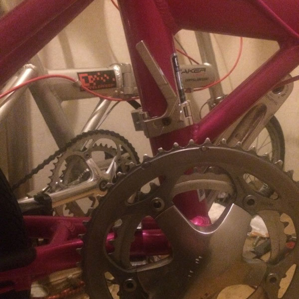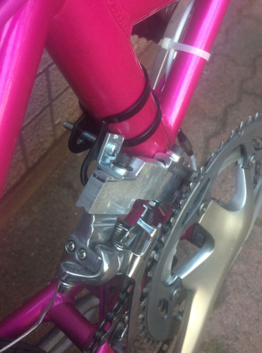 FDを取り付けるためにはフレームに固定するための台座が必要。普通はFD用のクランプや台座が販売されているのでそれを使えばいいのだが、スニーカーライトのシートチューブは40mmある。