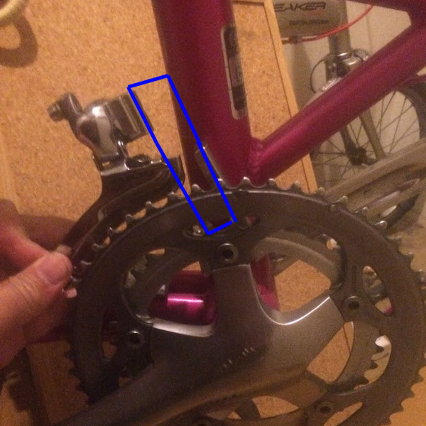 FDポジションはどこでもいいというわけではなく、フロントのクランクからチェーンが離れるキワの所にあるのがちょうどいいという事になっている。