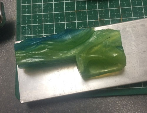 おおよその位置が決まったら水道水にさらして冷やし固める