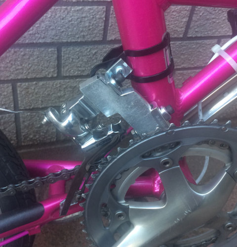 ドッペルギャンガーのFXシリーズは34.9mmあたりのフロントディレイラー(以下FD)がポン付けできるがスニーカーライトは残念ながら一筋縄ではいかなかった。