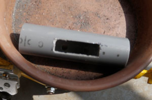 ダボ穴に朱肉をつけたティッシュを突っ込んでパイプをはめて位置取りしました。