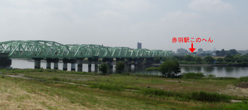 そして35km走ったところで赤羽の鉄橋。