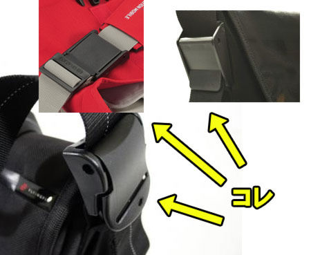 カムバックルという単語で調べるとTIMBUK2のパーツや工業用のパーツが出てくるのでそれもアリっぽいです。