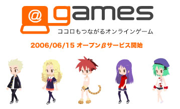 2006年6月15日(木)にオープンβサービス開始を予定いたしておりました、ゲームポータル「@games」のサービス開始日時を2006年6月29日(木)に延期することとなりました。