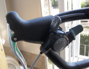 前回のようにつけると指が届かないので今回はブレーキレバーに埋まるように取り付け。