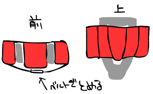 穴に収まるバッグに加えて左右にも小さいパックをつけて下でホールドして固定するというもの。