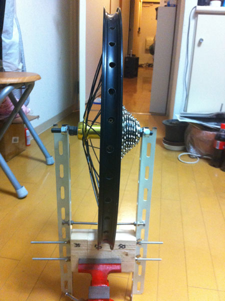 目測でセンターを取り、9速用のホイールを組んでみた。