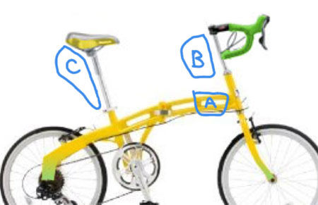 Cは小径のシートポスト長に合わせたロングサドルバッグ