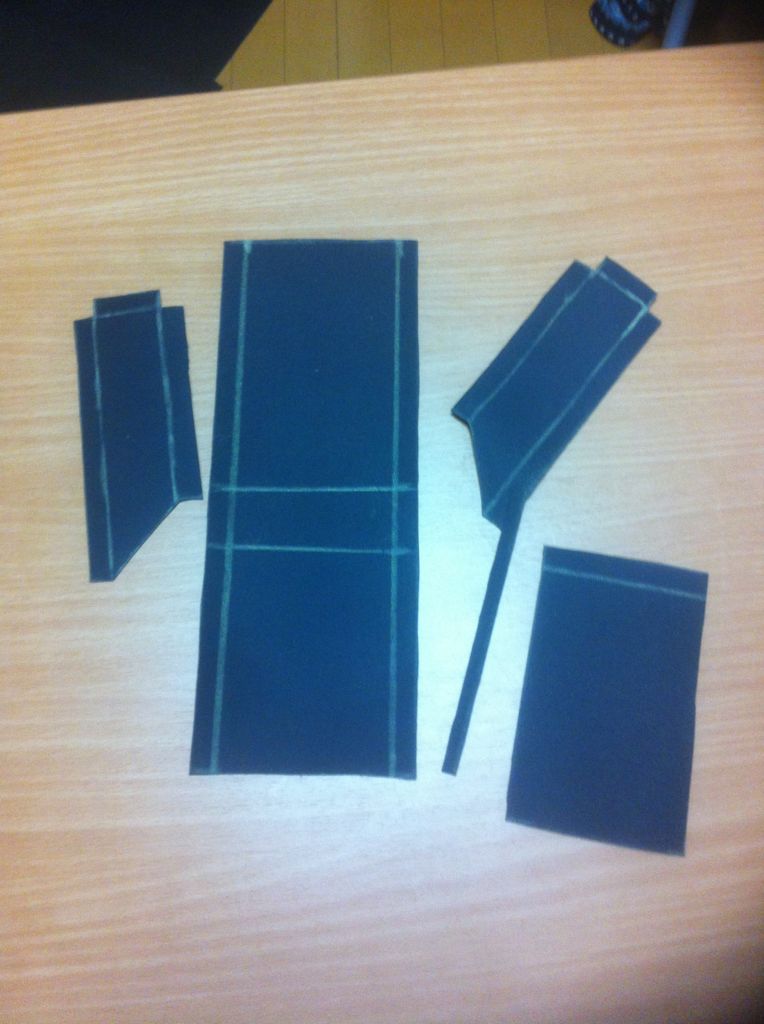 パーツ分けは前後と底を1枚で取り、左右とフタを縫い付ける形。