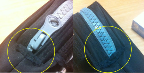 ファスナー部の端の始末がもうボロボロw