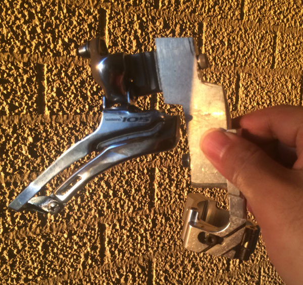 FDを取り付けるためにはフレームに固定するための台座が必要。普通はFD用のクランプや台座が販売されているのでそれを使えばいいのだが、スニーカーライトのシートチューブは40mmある。