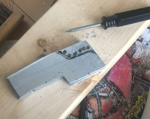 雛形を元に形を決めたらひたすらドリルと金ノコとヤスリで形を作っていく。